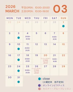 【重要】3月のピラティス 鹿児島 スケジュールと